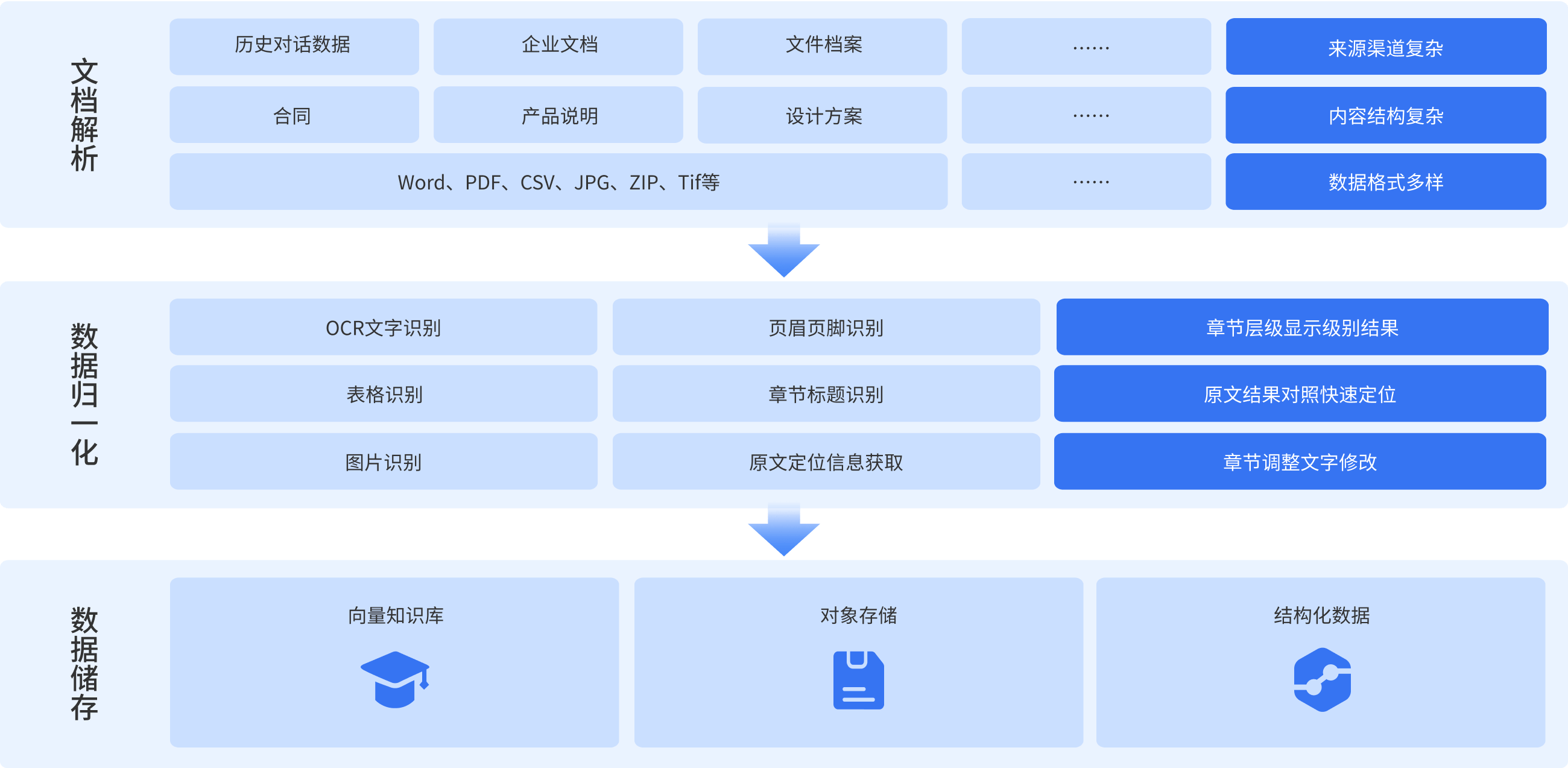 大模型數(shù)據(jù)治理專(zhuān)為海量知識(shí)數(shù)據(jù)管理而設(shè)計(jì)的高性能解決方案,為大模型增量化訓(xùn)練及微調(diào)訓(xùn)練提供基礎(chǔ)輸出處理支撐。支持一鍵解析多源異構(gòu)數(shù)據(jù)集,內(nèi)置AI模型實(shí)現(xiàn)文檔內(nèi)逐詞句的精準(zhǔn)檢索、定位及調(diào)用,提供高度可擴(kuò)展的接口,采用多元高精度OCR技術(shù),支持自動(dòng)解析原文結(jié)構(gòu)及內(nèi)容。
